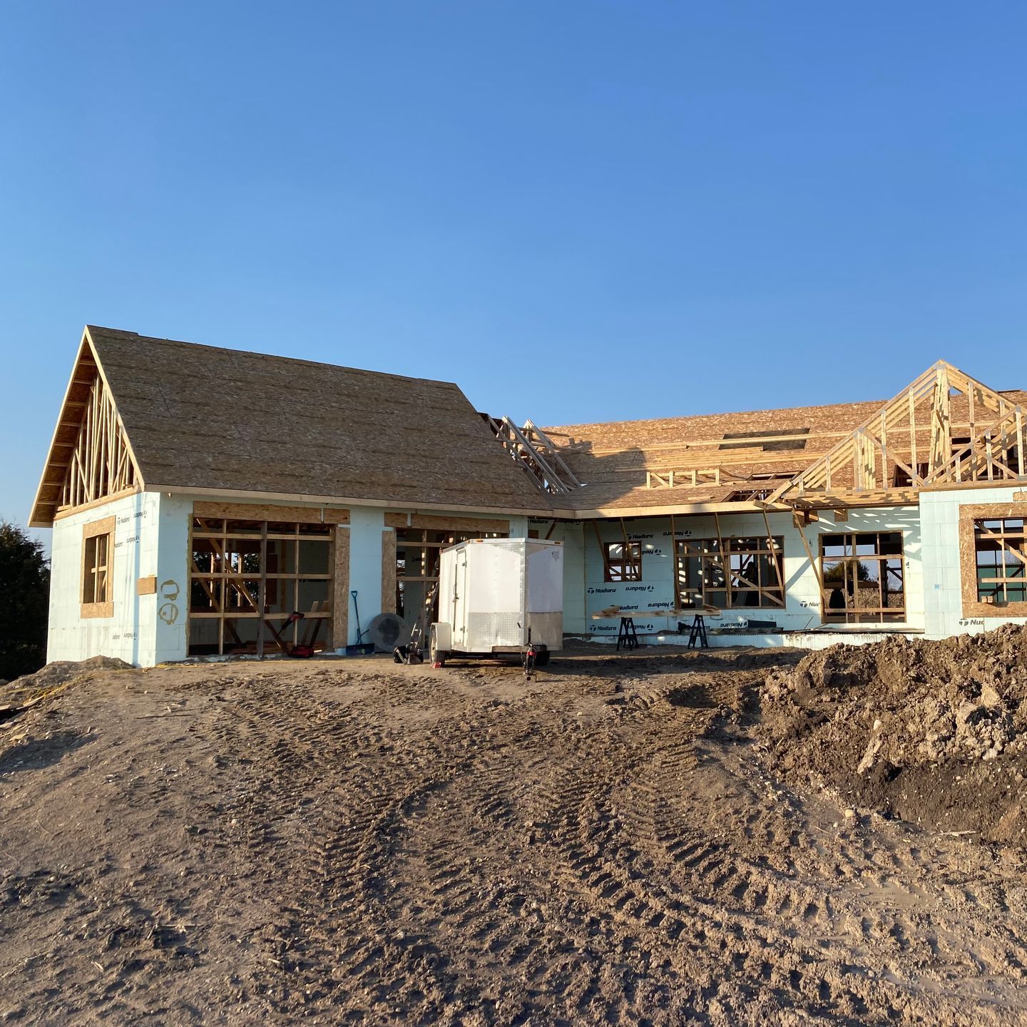 Wood board & batten surrounds this newly constructed 1.5 car garage with loft space...